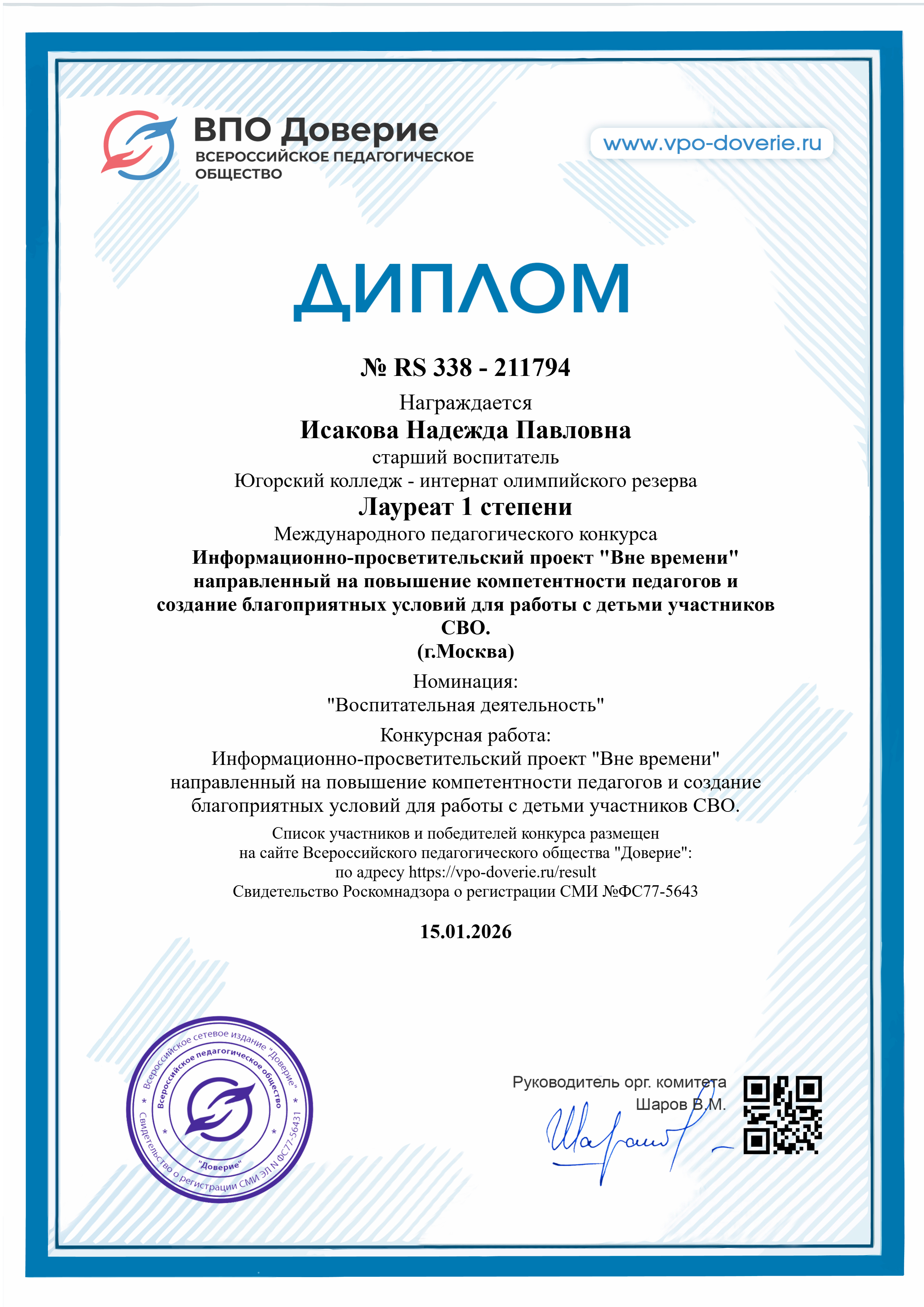 Диплом 1 место конкурс Родина Сумлянинова В.В.