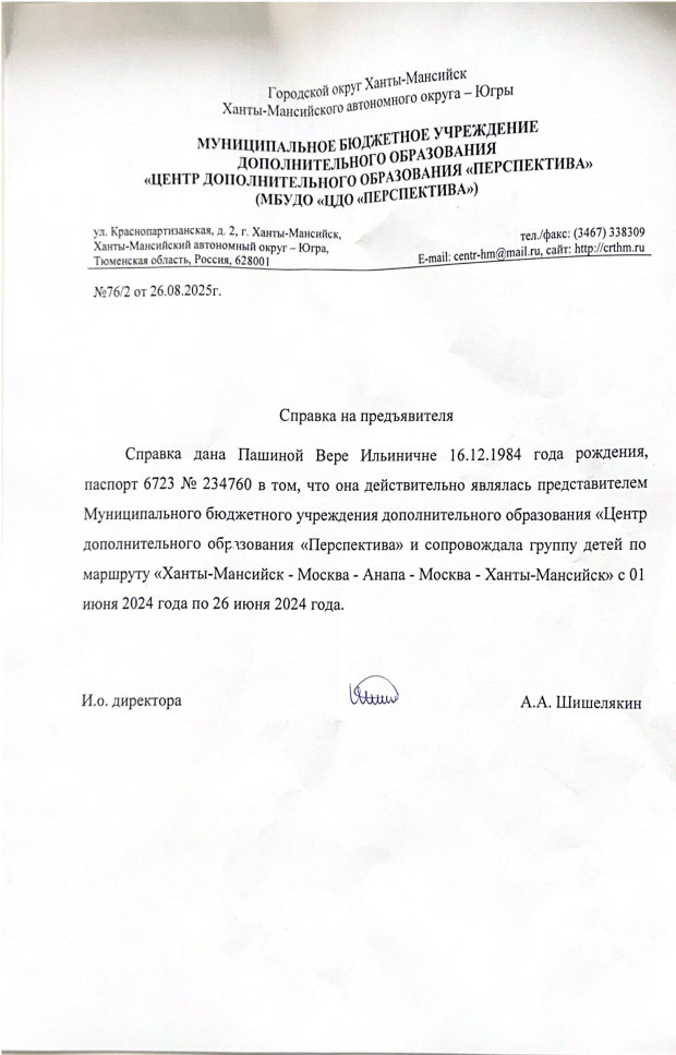| Профессионально-общественная активность | Справка -подтверждение Пашина В.И. | |