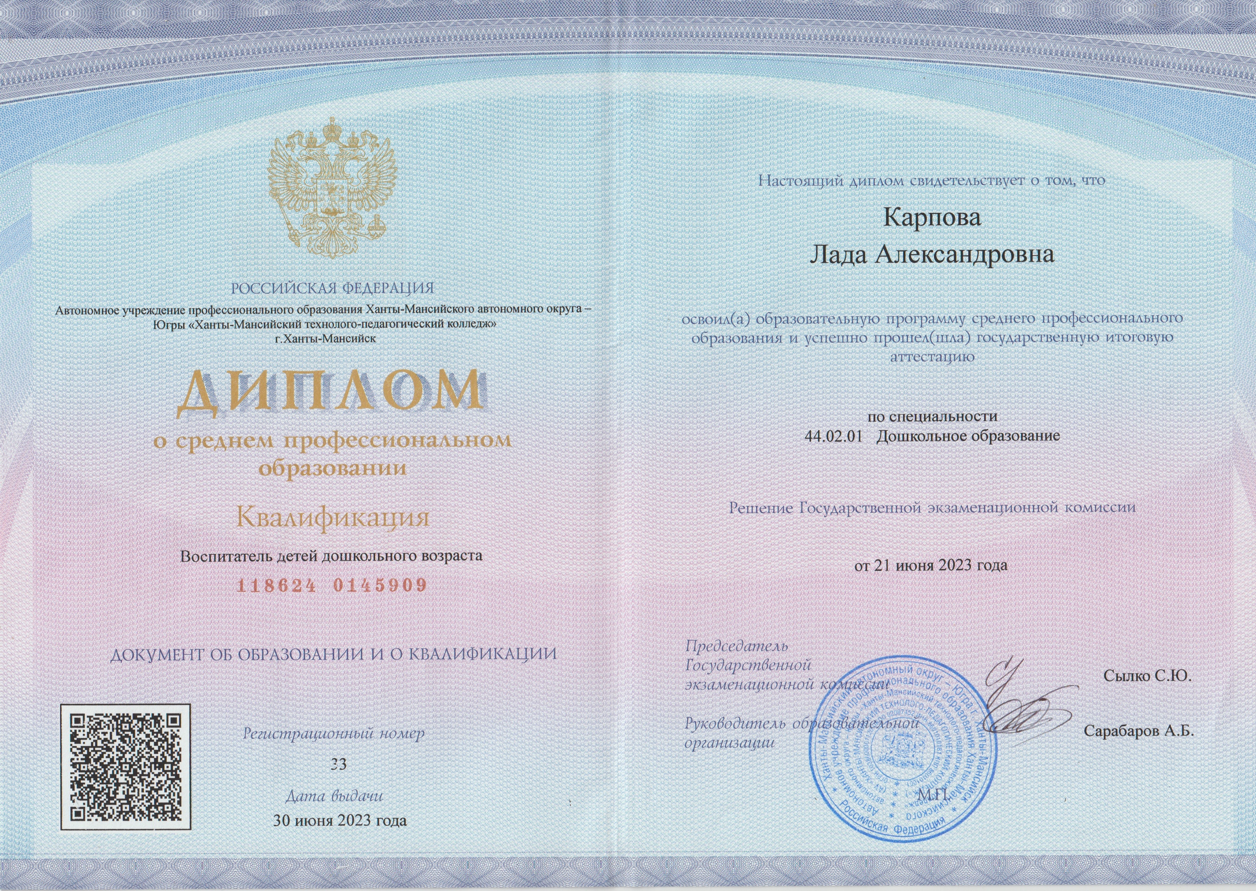 | Наличие образования по профилю профессиональной деятельности. Соответствие дополнительного профессионального образования, профилю профессиональной деятельности. | Диплом об образовании Профессиональная переподготовка Курсы повышения квалификации Самообразование Вебинар Как бороться с рутиной и находить вдохновение в повседневности Вебинар Как работать с одарёнными детьми Педагогическая практика Вебинар Ошибки во время публичного выступления. Так ли это страшно Вебинар Работа с родителями, как выстроить доверительные отношения Вебинар Формы проведения мероприятий для родителей Курс Персональная ответственность Курс Экосистема молодежной политики Научно-методическая конференция Особенности выявления семей Онлайн-курс для волонтеров, руководителей, специалистов, работающих с детьми Педагогические чтения Планирование работы по профилактике правонарушений Семинар Традиционные и инновационные формы правового просвещения школьнков |
