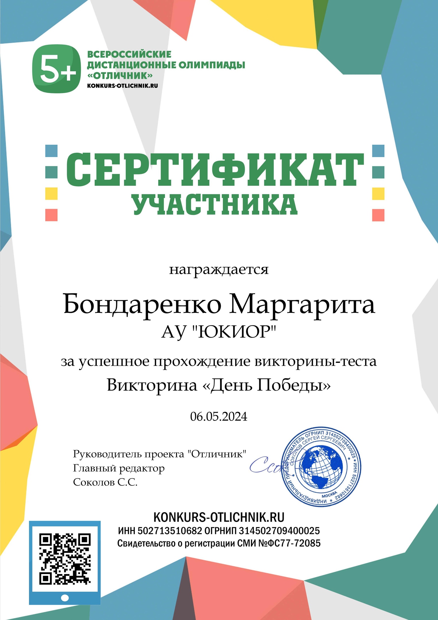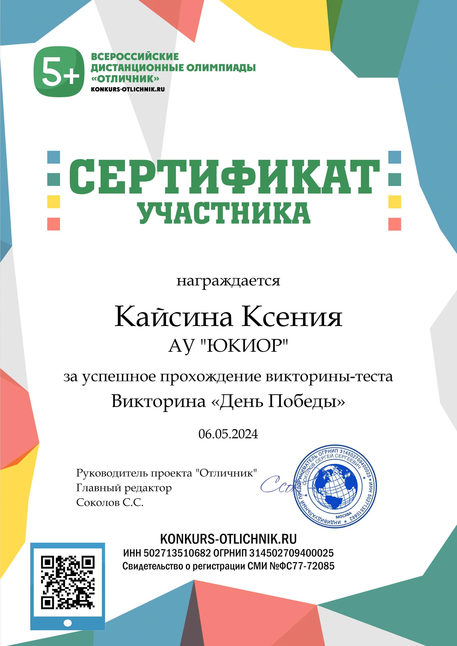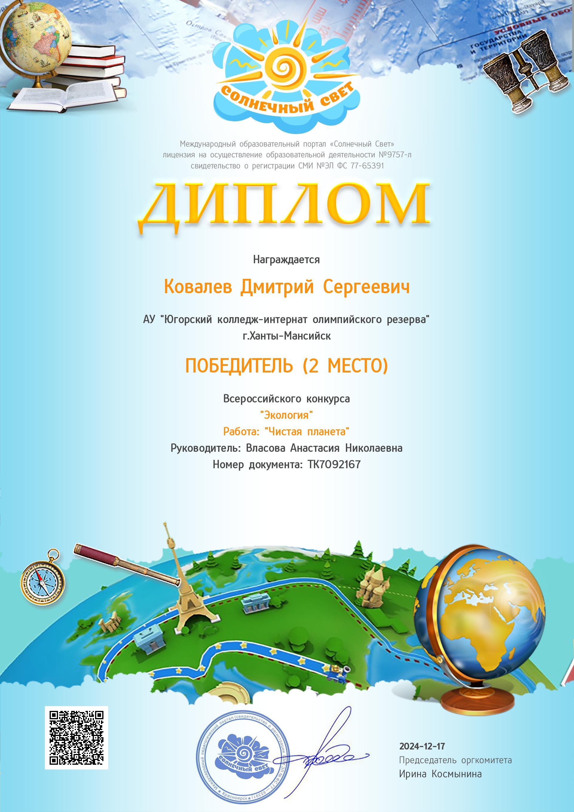 Диплом победителя конк. научно-исслед. работ Никита К.