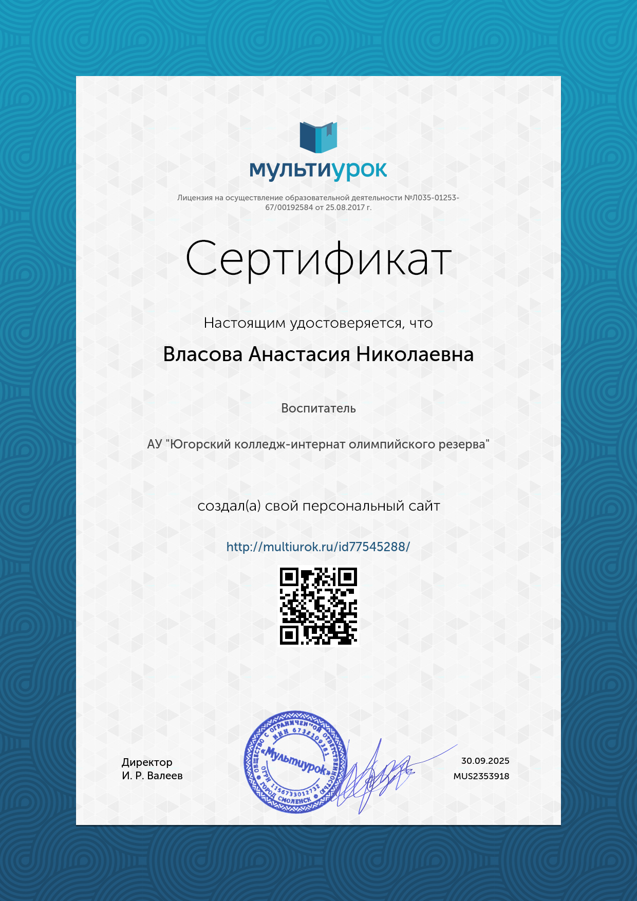 Диплом 1 место Рамазан Г. Всерос. олимпиада по здоровому образу жизни