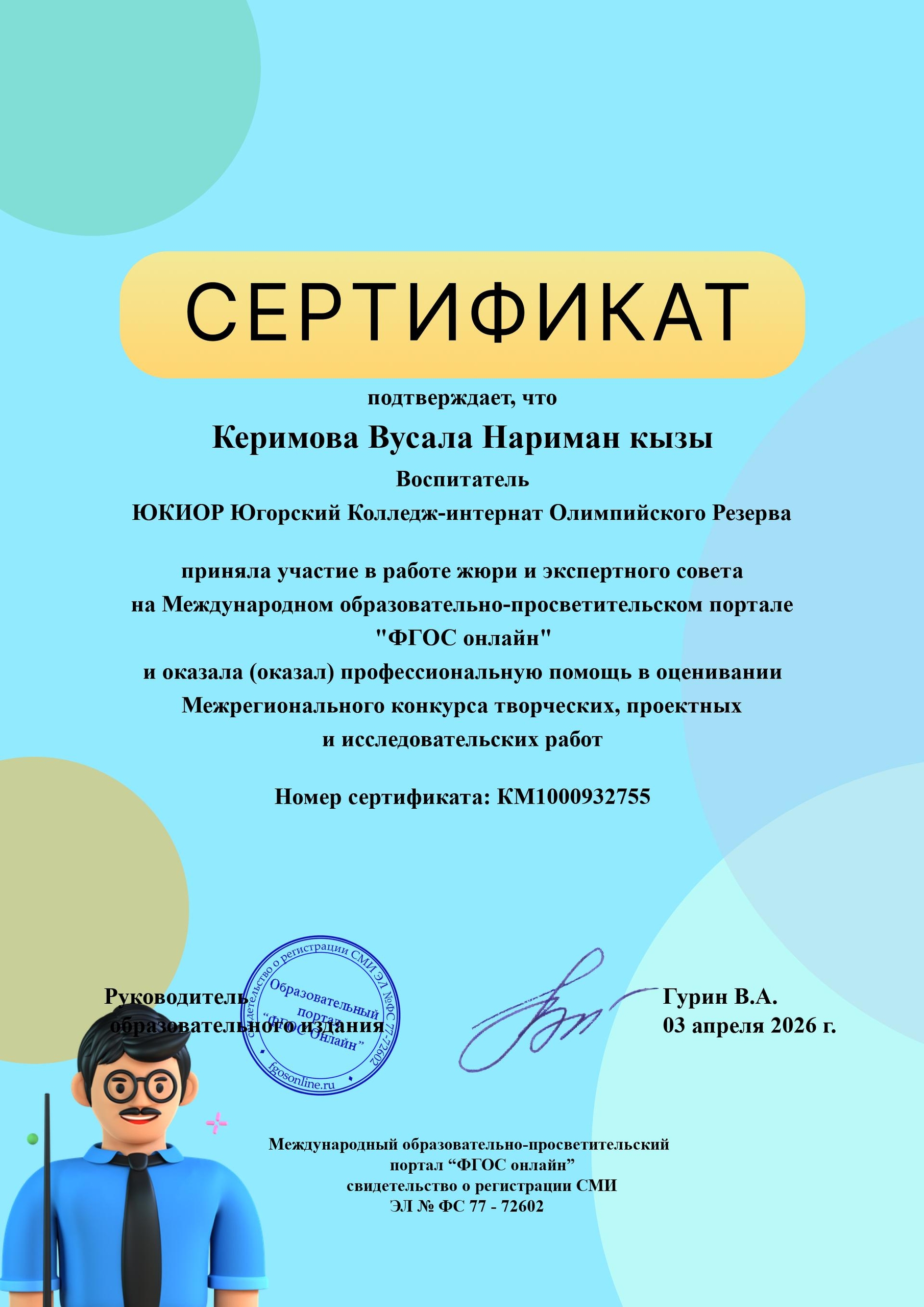 Сертификат по экспертной деятельности |
