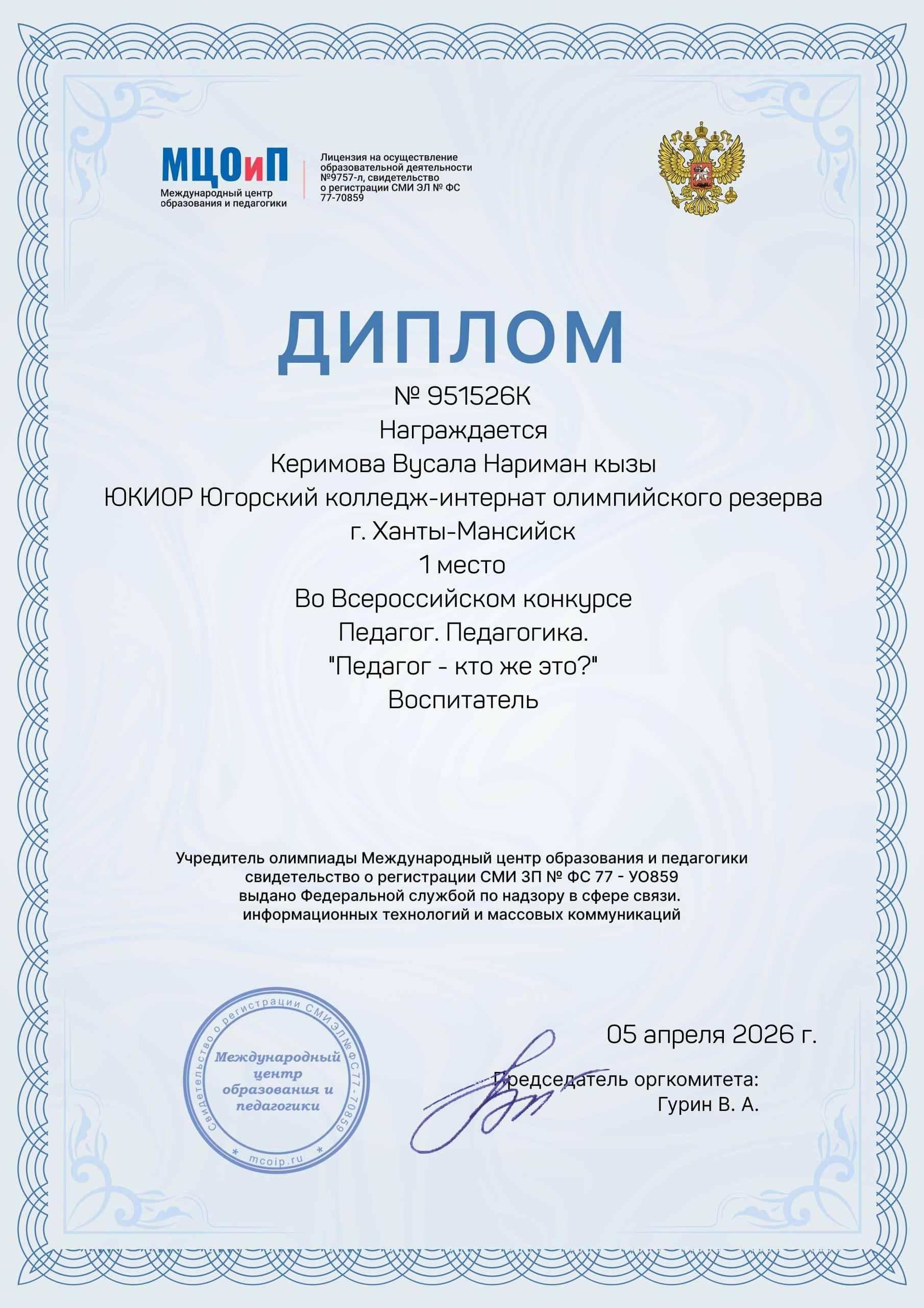 Диплом о среднем профессиональном образовании Курсы повышения квалификации ПК Дети и подростки группы риска, 180 час. ПК Основы организации работы по предупреждению безнадзорности ПК Сопровождение детей при перевозке автотранспортом Самообразование Вебинар Формы проведения мероприятий для родителей Курс Слышать Говорить Помогать Научно-методическая конференция Особенности выявления семей Основы волонтерства для начинающих Педагогические чтения Планирование работы по профилактике правонарушений Семинар Традиционные и инновационные формы правового просвещения школьников |