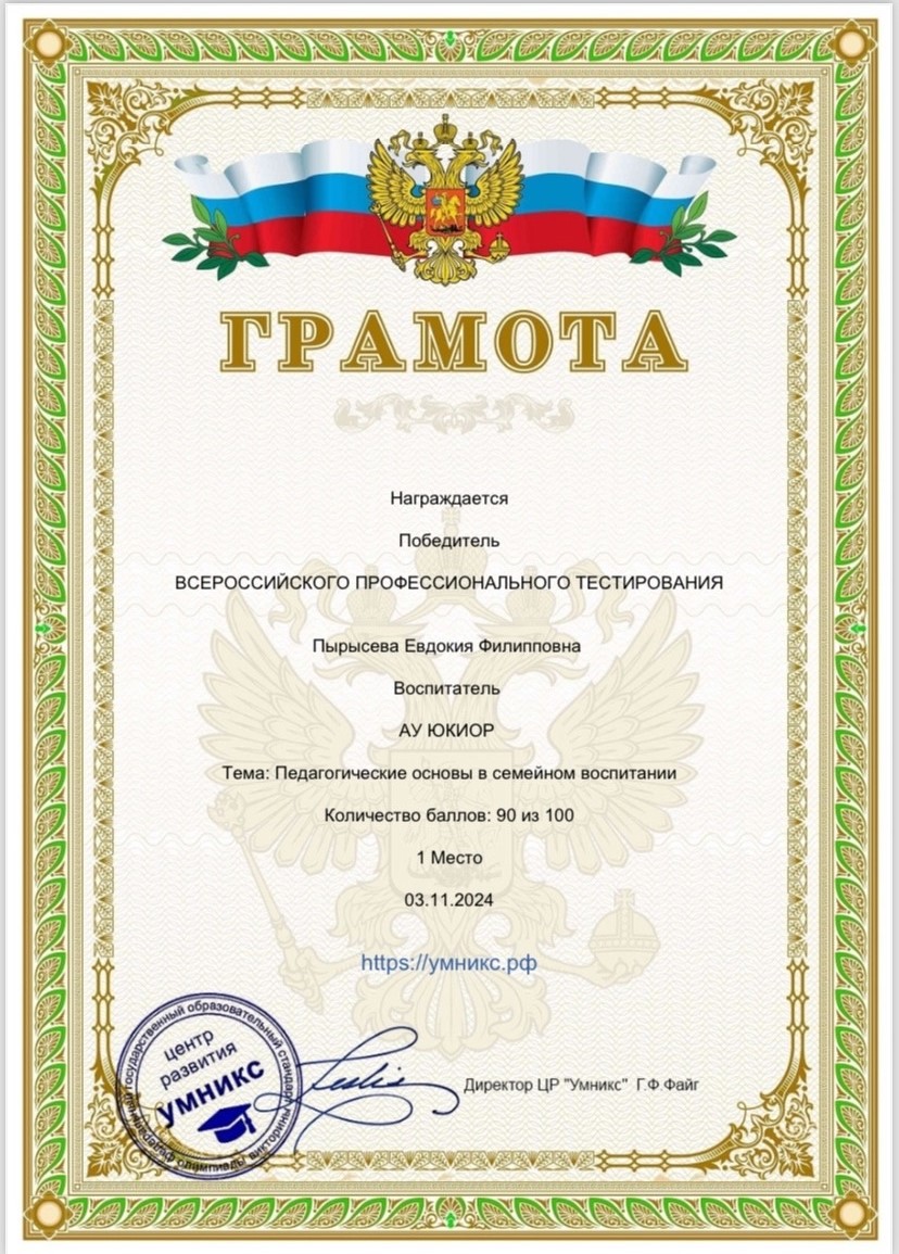 Грамота 3 место Профес. тестирование Грамота победителя профес. тестирование Диплом 1 степени Педагогика 21 века Диплом тестирование по цифровым ресурсам Диплом участника мастер-класса Выстраивание коммуникации между пед. и родит. Сертификат участника. Этнографич. диктант |