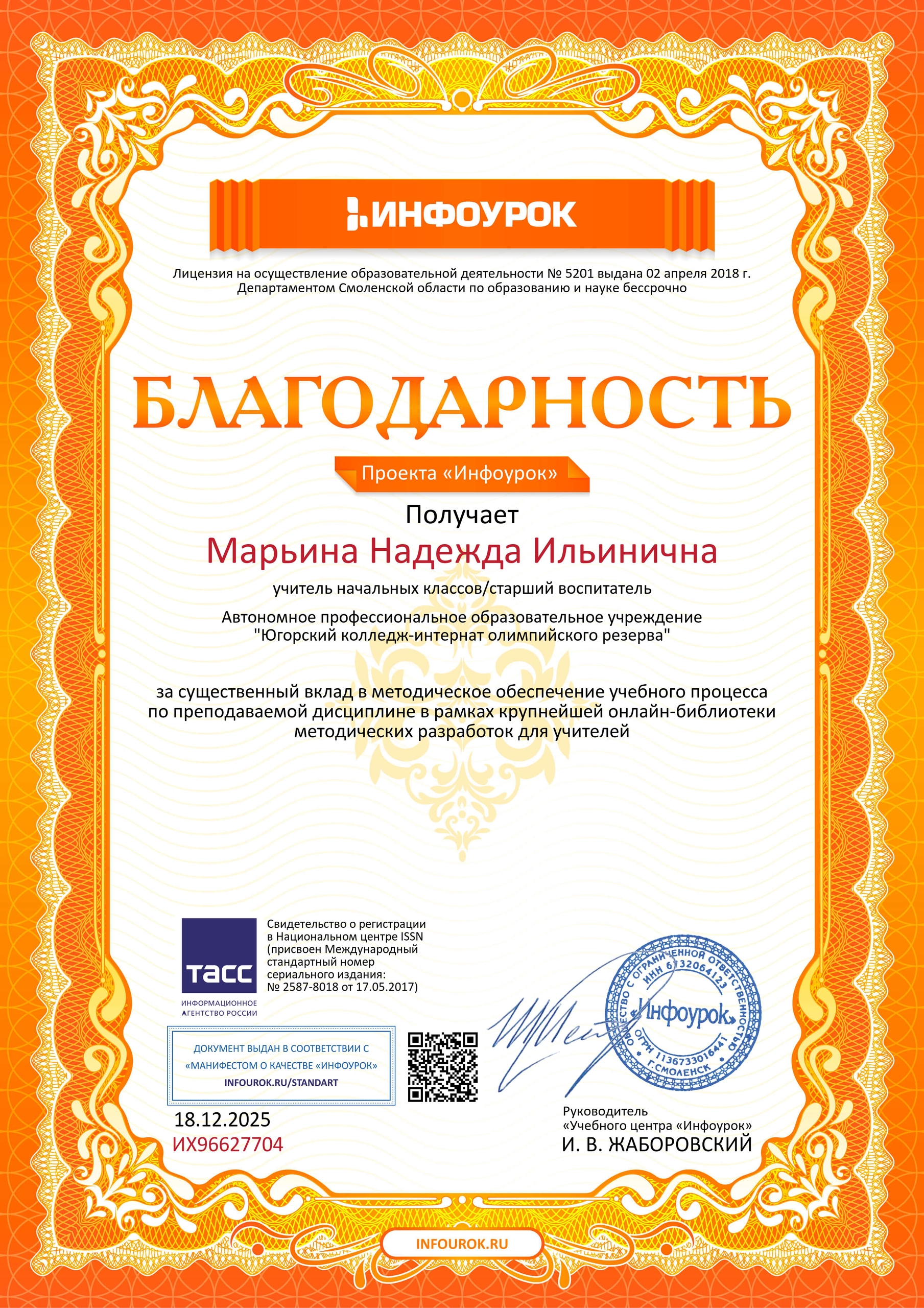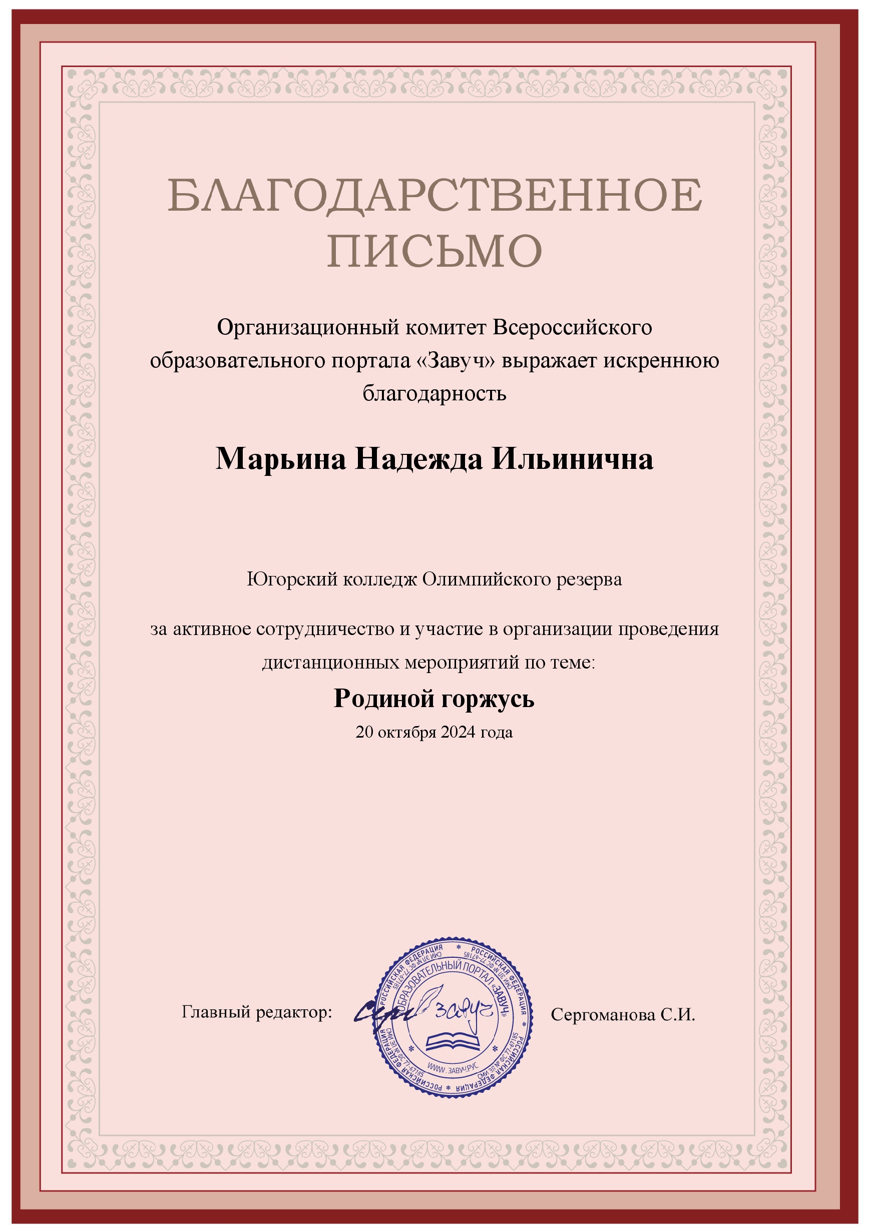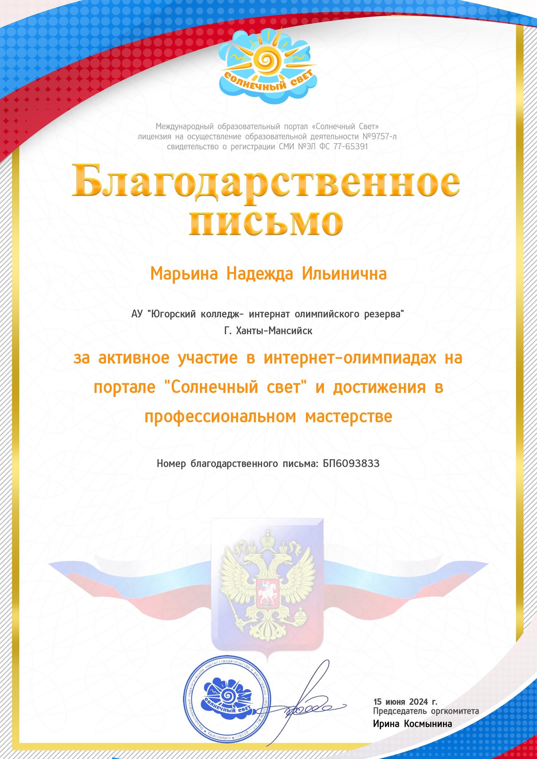 БП образовательный портал Солнечный свет Благодарственное письмо Родиной горжусь