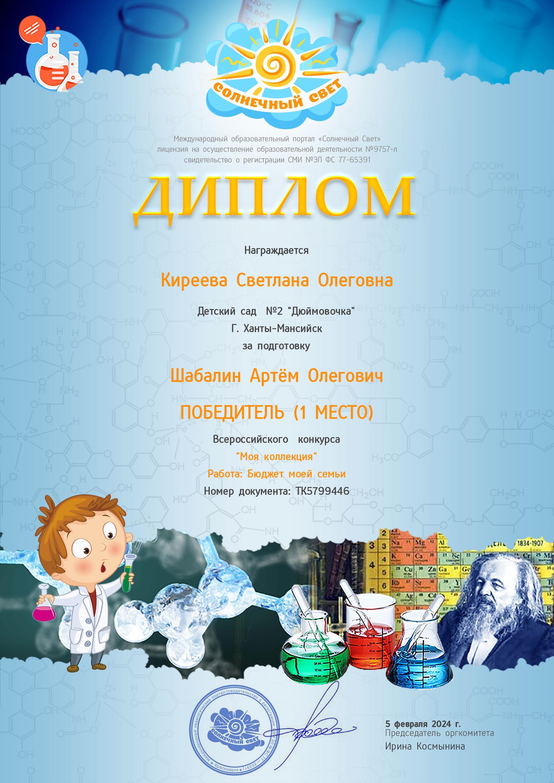 Диплом победителя конк. Моя коллекция Артем Ш.