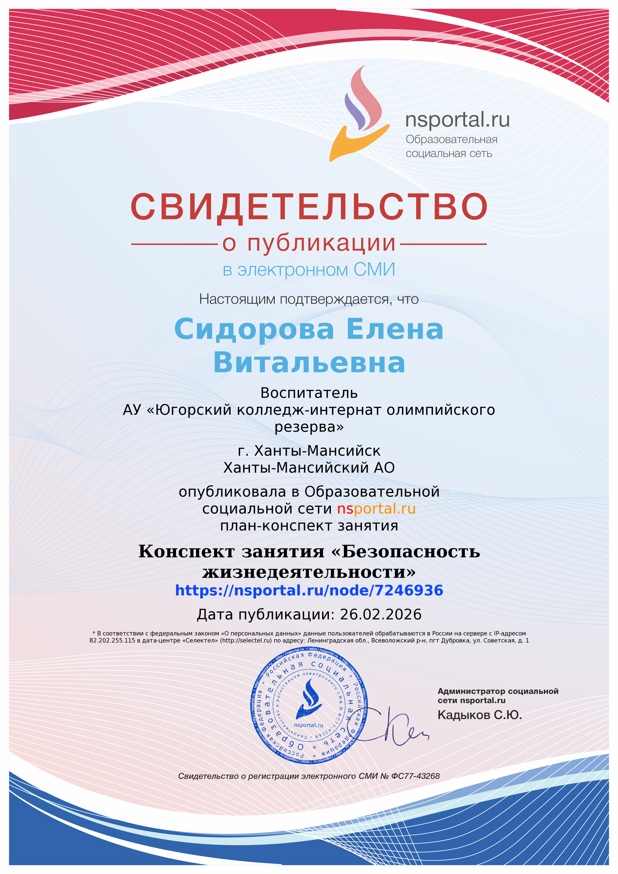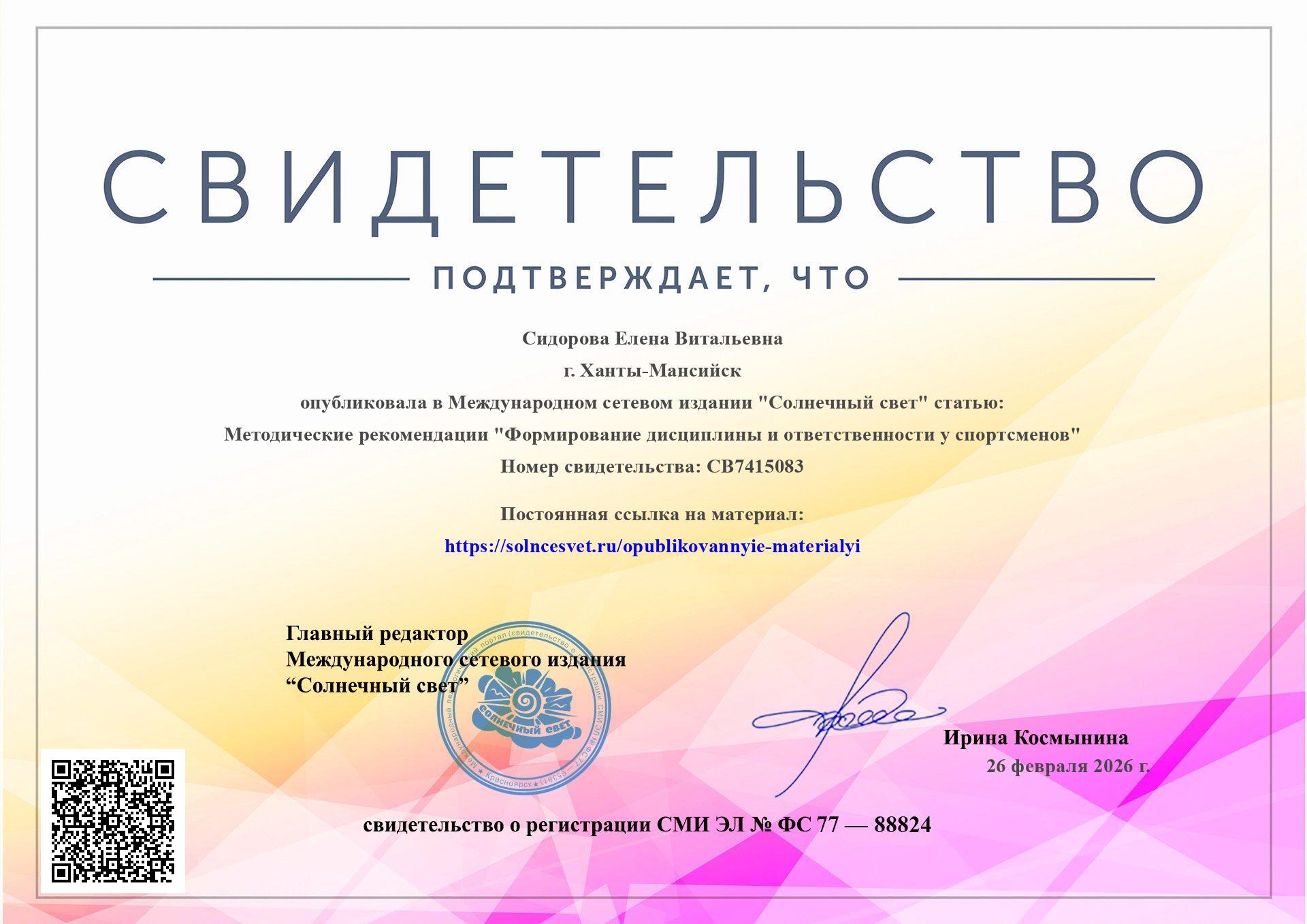 Всероссийское образовательно-просветительское издание Альманах педагога Методическая разработка конспекта Безопасность жизнедеятельности Методические рекомендации Формирование дисциплины и ответственности у спортсменов |
