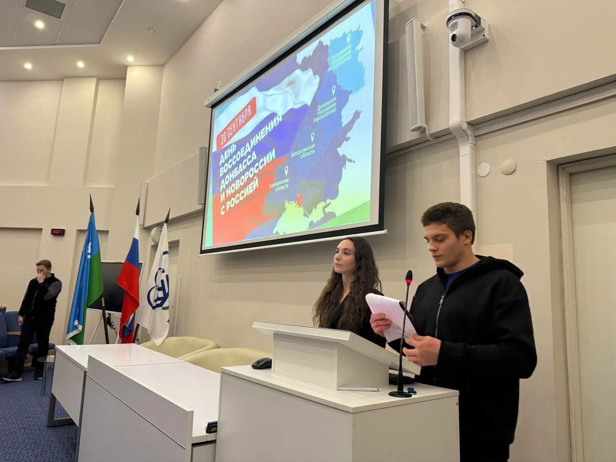 28 сентября в преддверии Дня воссоединения Донецкой и Луганской народных республик, Запорожской и Херсонской областей с Российской Федерацией, который отмечается 30 сентября, в колледже состоялось патриотическое мероприятие для обучающихся.